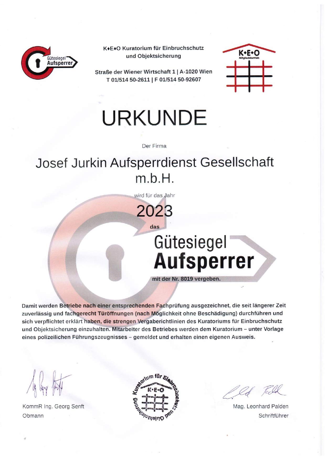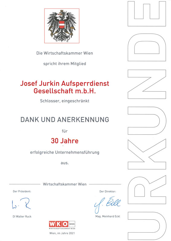 Seit Mai 1991 ist unser Familienbetrieb für unsere Kunden und Kundinnen aus Wien da. Das erfahrene Team von Josef Jurkin Aufsperrdienst GmbH bietet Ihnen kompetente Beratung und professionelle Umsetzung Ihrer Wünsche. Sie erhalten bei uns hochwertige Schlüssel, Schlösser und Balkenschlösser sowie exakte Montage. Wir beraten Sie zu innovativem Einbruchschutz, führen Delogierungen durch und kümmern uns um sämtliche Montageleistungen.
